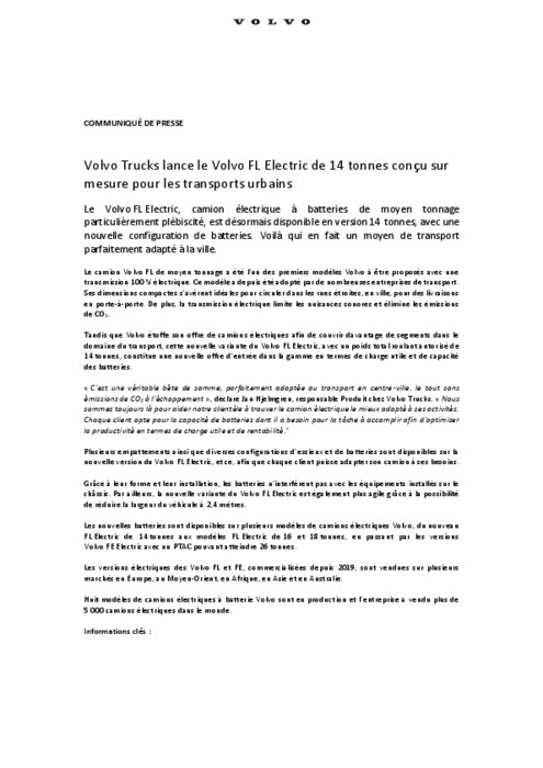 Volvo Trucks lance le Volvo FL Electric de 14 tonnes