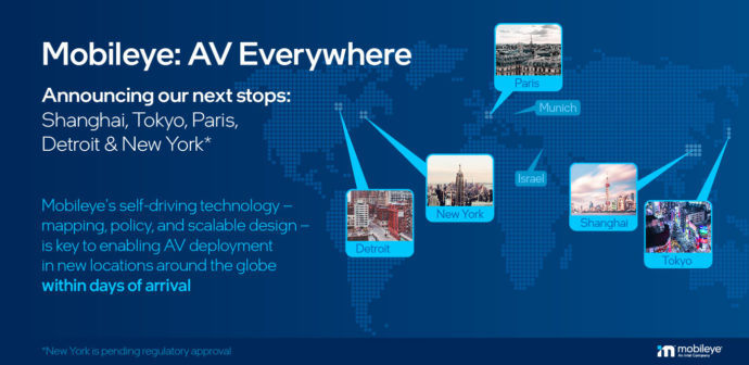 "Le soutien d'Intel et le caractère tripartite de notre approche signifie que Mobileye peut s'étendre de manière inédite", a déclaré M. Shashua. "Chaque partie de notre plan vise une extensibilité géographique et économique rapide - et l'actualité d'aujourd'hui montre la façon dont nos innovations nous permettent de mettre en œuvre cette stratégie".