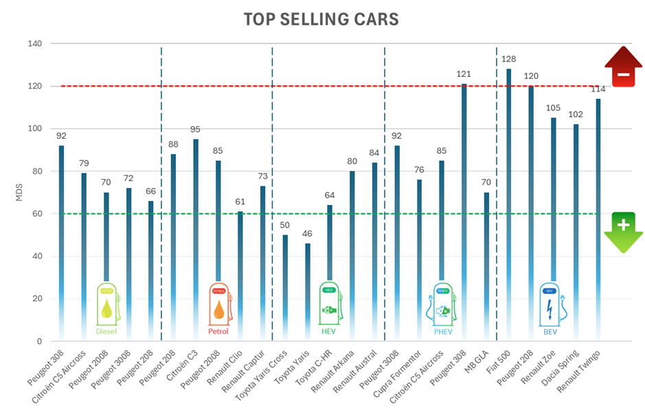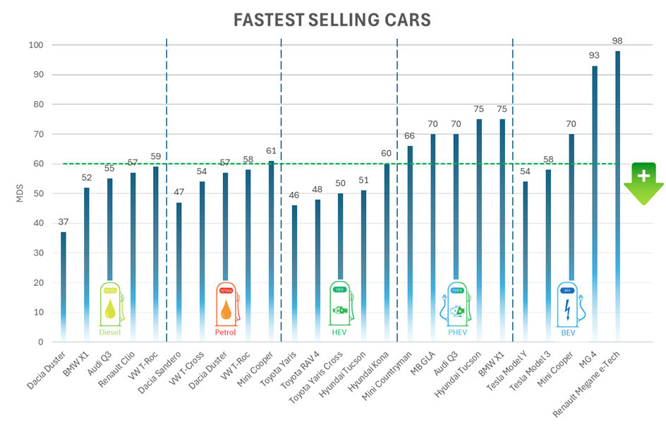 En 2025, l’analyse du Market Days Supply (MDS) — l’indicateur d’Indicata qui mesure la vitesse potentielle de rotation des véhicules en fonction de l’équilibre entre l’offre et la demande — révèle un marché français de l’occasion en pleine évolution. Le MDS montre un marché qui progresse, mais où subsistent des écarts marqués entre les énergies, les marques — notamment chinoises — et les modèles. « Le MDS ne se contente pas d’observer les stocks : il met en lumière la rapidité avec laquelle les acheteurs arbitrent réellement », explique Yoann Taitz, Responsable Régional Forecast et Expert Marché.